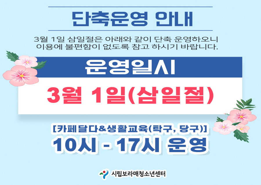 | ÀÛ¼ºÀÚ : ½Ã¸³º¸¶ó¸Åû¼Ò³â¼¾ÅÍ(webmaster@boramyc.or.kr) ÀÛ¼ºÀÏ : 2023-02-24 Á¶È¸¼ö : 1776 | |||