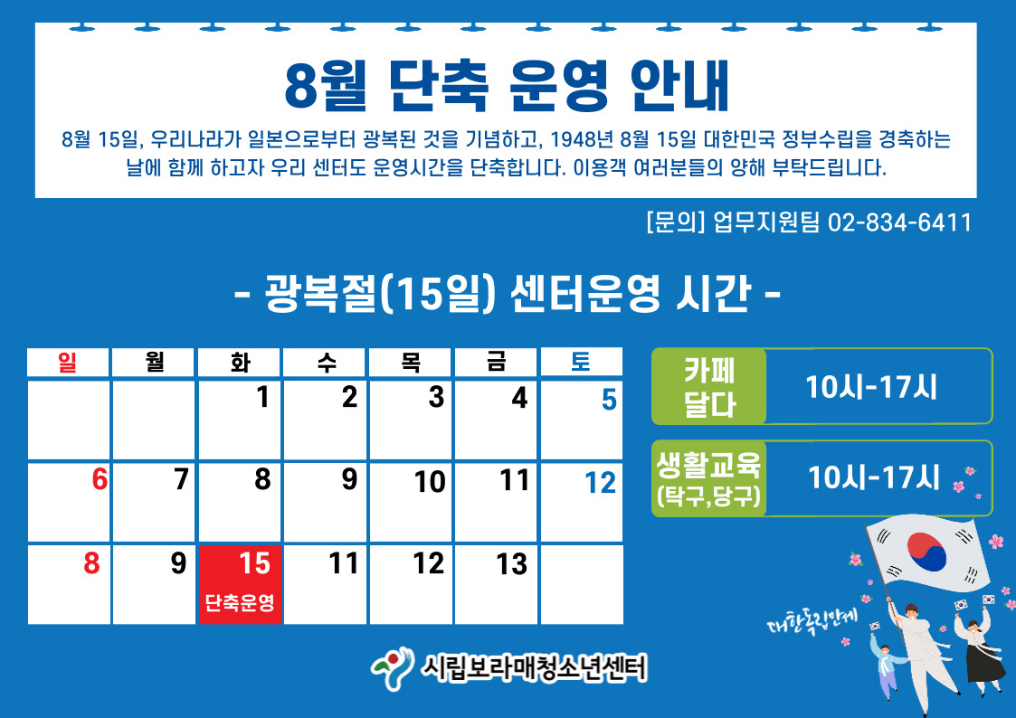 | ÀÛ¼ºÀÚ : ½Ã¸³º¸¶ó¸Åû¼Ò³â¼¾ÅÍ(webmaster@boramyc.or.kr) ÀÛ¼ºÀÏ : 2023-08-02 Á¶È¸¼ö : 2398 | |||