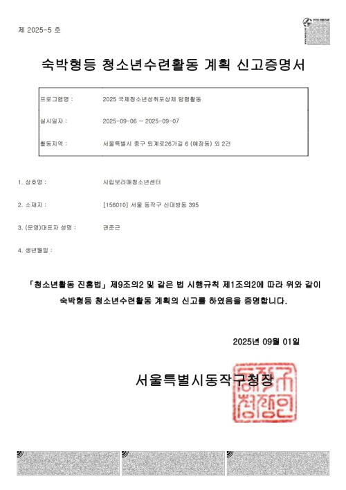 ´ÙÀ½±Û | û¼Ò³â¼ö·Ã½Ã¼³ ¾ÈÀüÁ¡°Ë °øÁö(2025.8) |