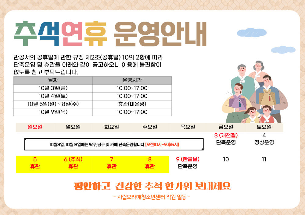 [°øÁö] 10¿ù ´ÜÃà¿î¿µ ¹× ÈÞ°ü ¾È³» | |||