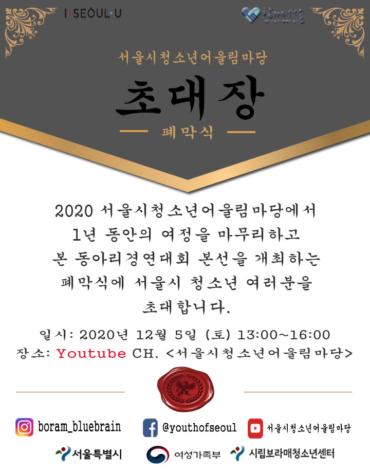 [¾î¿ï¸²¸¶´ç] 2020 ¼¿ï½Ã û¼Ò³â ¾î¿ï¸²¸¶´ç 10ȸ ¿î¿µ ¹× Âü°¡ÀÚ ¸ðÁý ¾È³» | |||