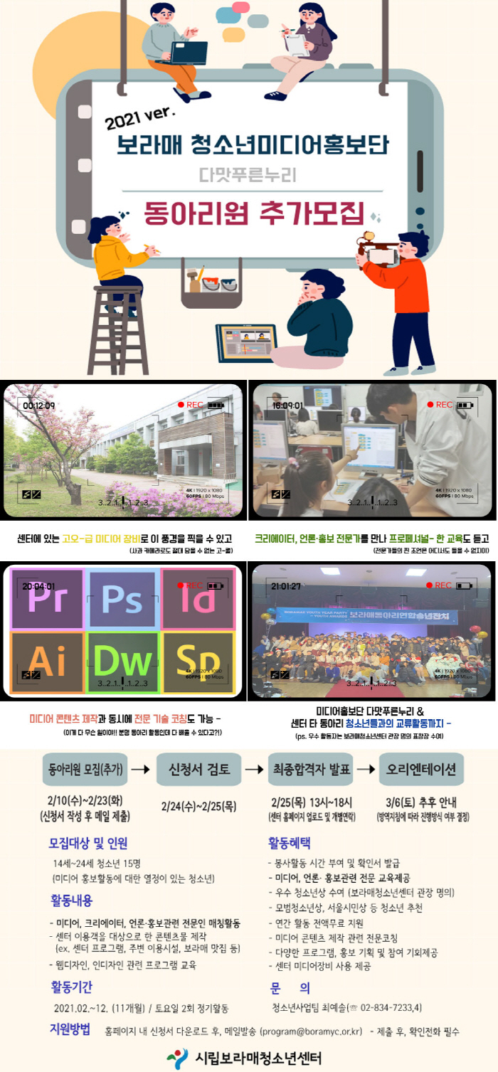 | [¸ðÁý] 2021³â û¼Ò³â¹Ìµð¾îÈ«º¸´Ü µ¿¾Æ¸®¿ø Ãß°¡ ¸ðÁý | |||