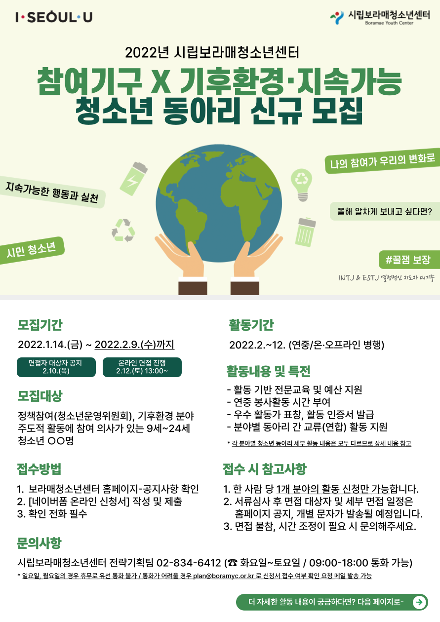 | [¸ðÁý] [¸¶°¨] 2022³â Âü¿©±â±¸(û¼Ò³â¿î¿µÀ§¿øÈ¸), ±âÈÄȯ°æ ºÐ¾ß û¼Ò³â µ¿¾Æ¸® ¸ðÁý | |||
