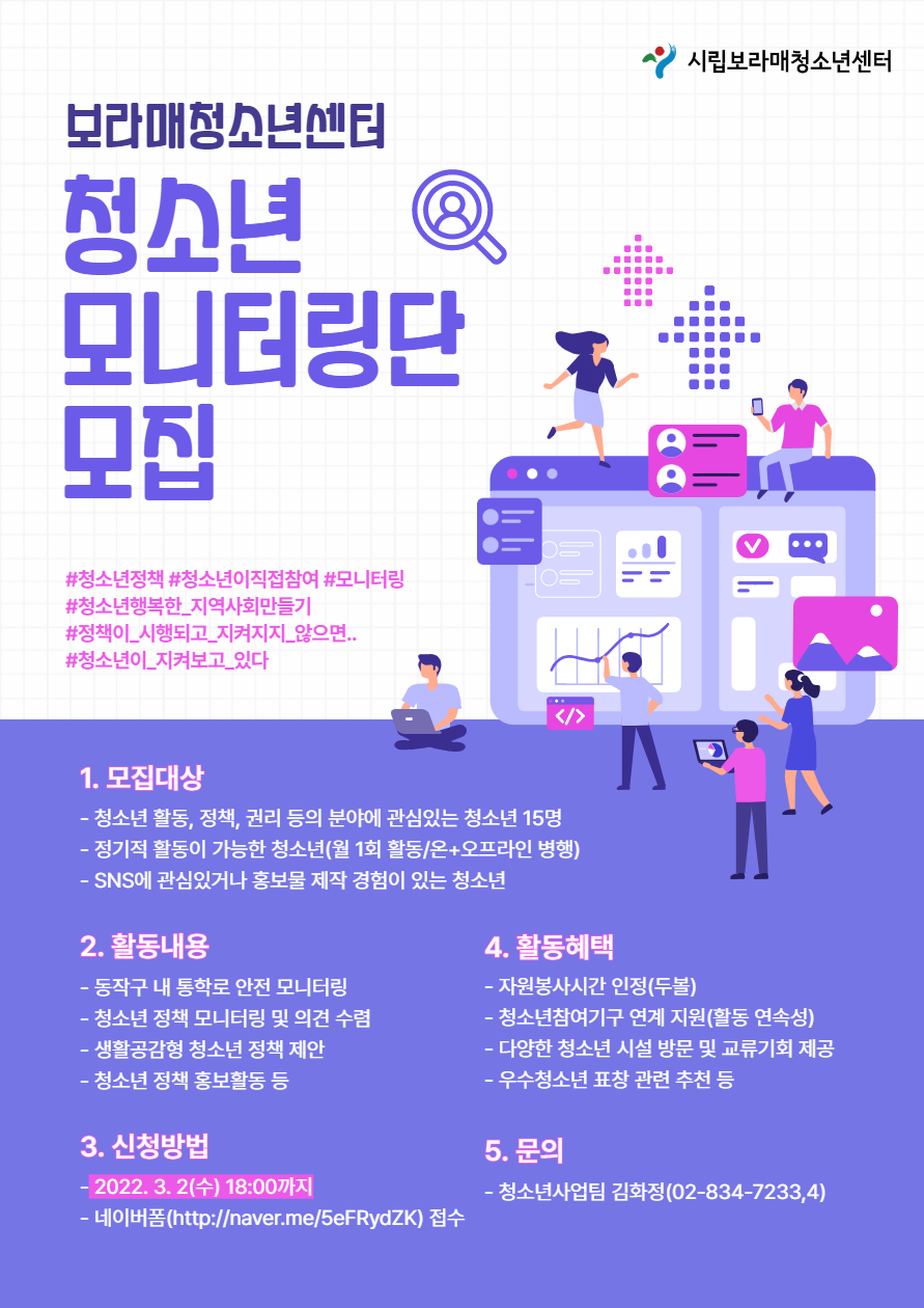 | ÀÛ¼ºÀÚ : û¼Ò³â»ç¾÷ÆÀ(program@boramyc.or.kr) ÀÛ¼ºÀÏ : 2022-02-16 Á¶È¸¼ö : 1990 | |||