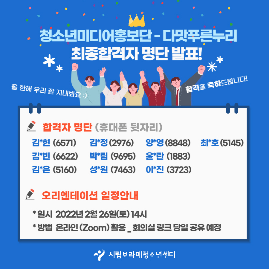| [¸ðÁý] 2022³â û¼Ò³â¹Ìµð¾îÈ«º¸´Ü - ´Ù¸ÀǪ¸¥´©¸® ÃÖÁ¾ ÇÕ°ÝÀÚ ¾È³» | |||