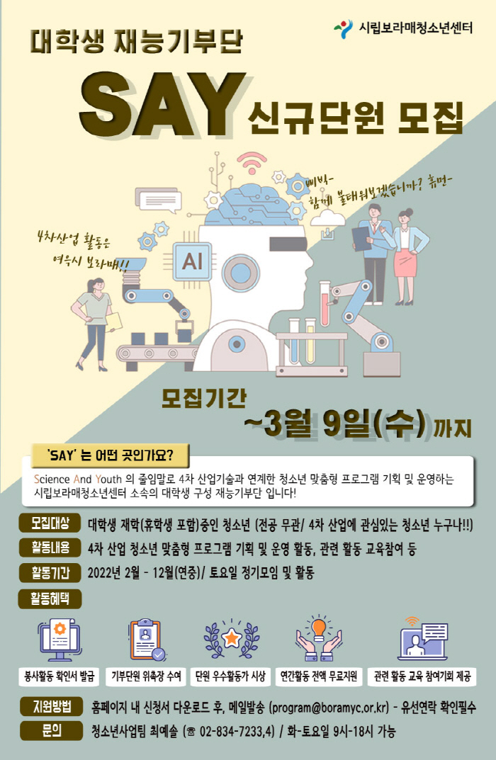 | [¸ðÁý] ´ëÇлýÀç´É±âºÎ´Ü SAY Ãß°¡ ¸ðÁý ¾È³» | |||