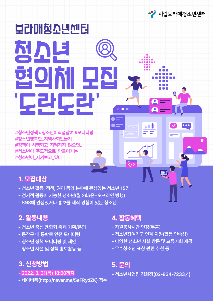 | ÀÛ¼ºÀÚ : û¼Ò³â»ç¾÷ÆÀ(program@boramyc.or.kr) ÀÛ¼ºÀÏ : 2022-03-16 Á¶È¸¼ö : 3699 | |||