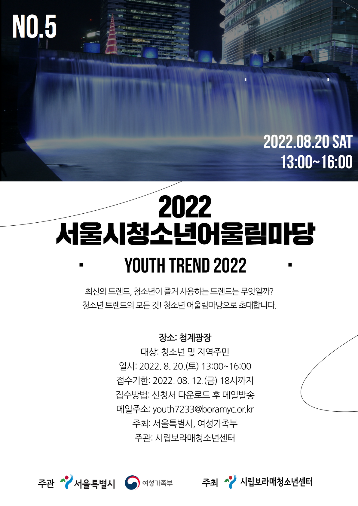 | [¾î¿ï¸²¸¶´ç] [¸ðÁý] 2022³â ¼¿ï½Ã û¼Ò³â¾î¿ï¸²¸¶´ç 5ȸ (Âü°¡ÀÚ ¸ðÁý) | |||