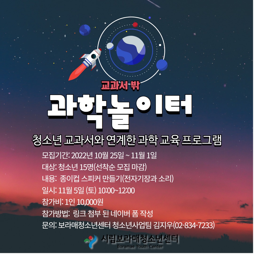| [¸ðÁý] [±³°ú¼ ¹Û °úÇгîÀÌÅÍ] ±³°ú¼¿¬°è °úÇÐ ±³À° ÇÁ·Î±×·¥ Âü¿© û¼Ò³â ¸ðÁý! | |||