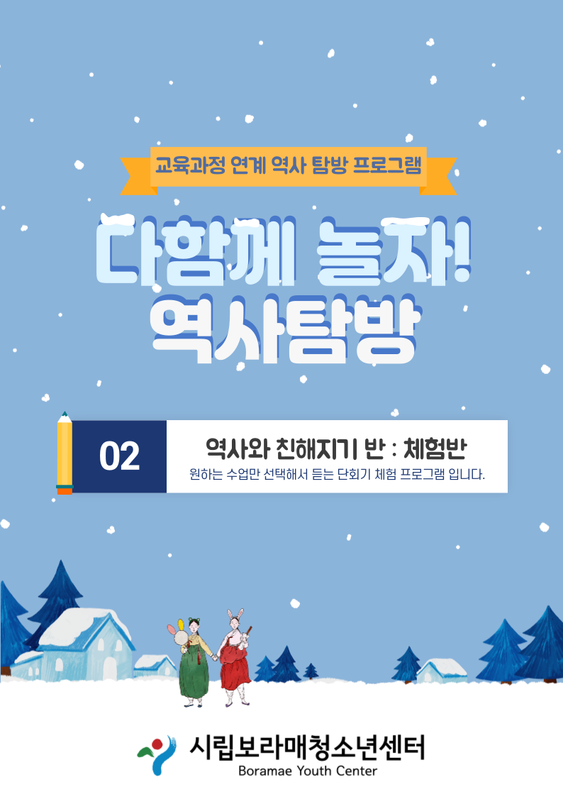| [¸ðÁý] 2023³â ´ÙÇÔ²² ³îÀÚ! ¿ª»ç޹æ : ¿ª»ç¿Í Ä£ÇØÁö±â ¹Ý(üÇè¹Ý) Âü°¡ÀÚ ¸ðÁý | |||
