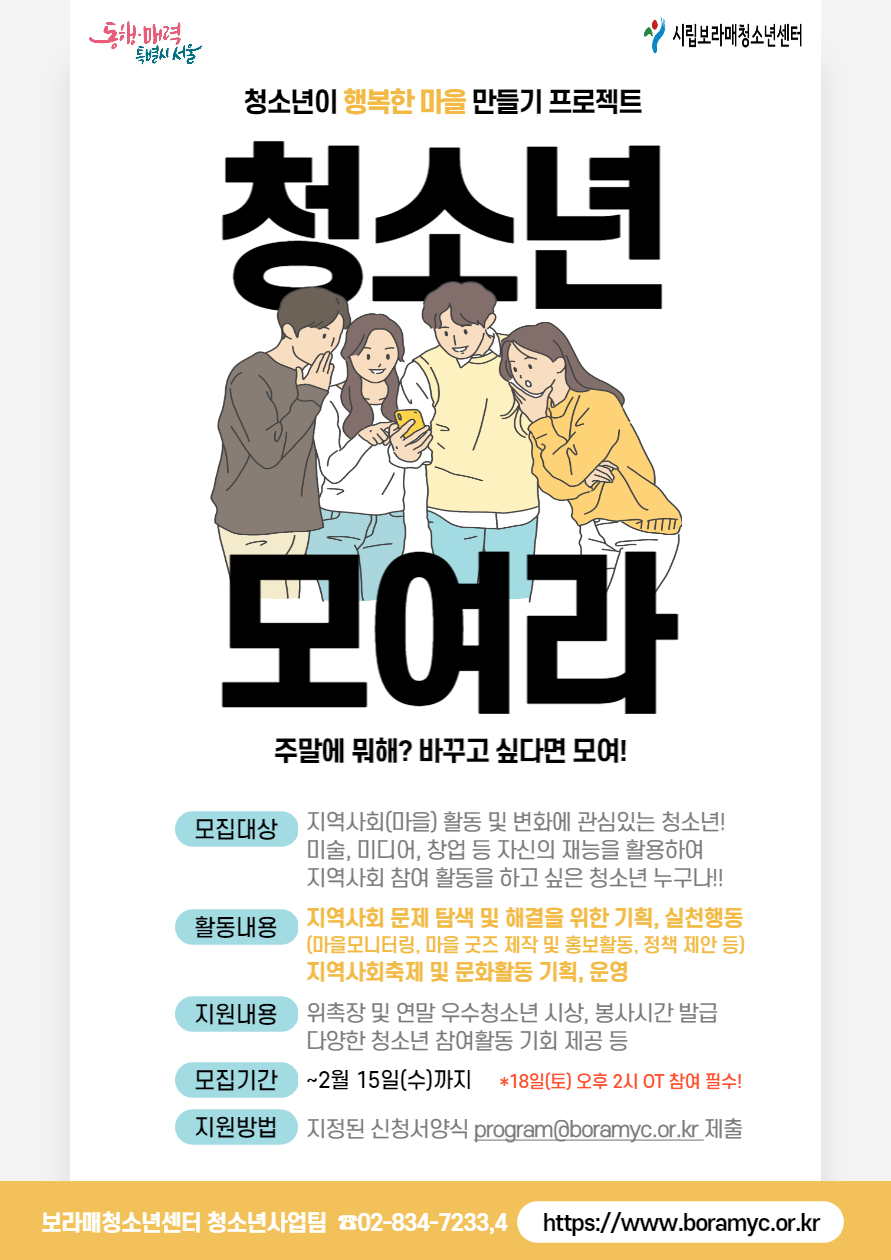 | ÀÛ¼ºÀÚ : û¼Ò³â»ç¾÷ÆÀ(program@boramyc.or.kr) ÀÛ¼ºÀÏ : 2023-02-04 Á¶È¸¼ö : 716 | |||