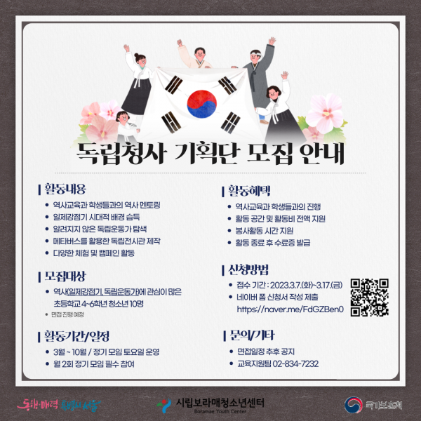 | [¸ðÁý] 2023³â µ¶¸³Ã»»ç û¼Ò³â ±âȹ´Ü ¸ðÁý | |||