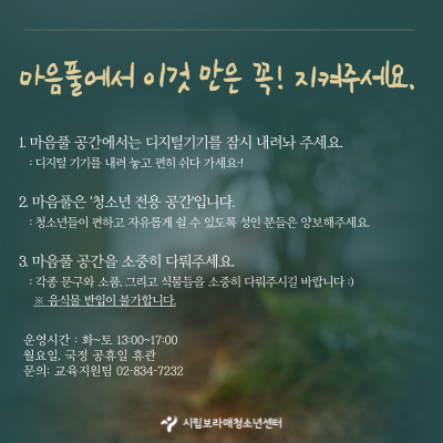 | [¾È³»] û¼Ò³â Àü¿ë °ø°£ '¸¶À½Ç®' OPEN ¾È³» | |||