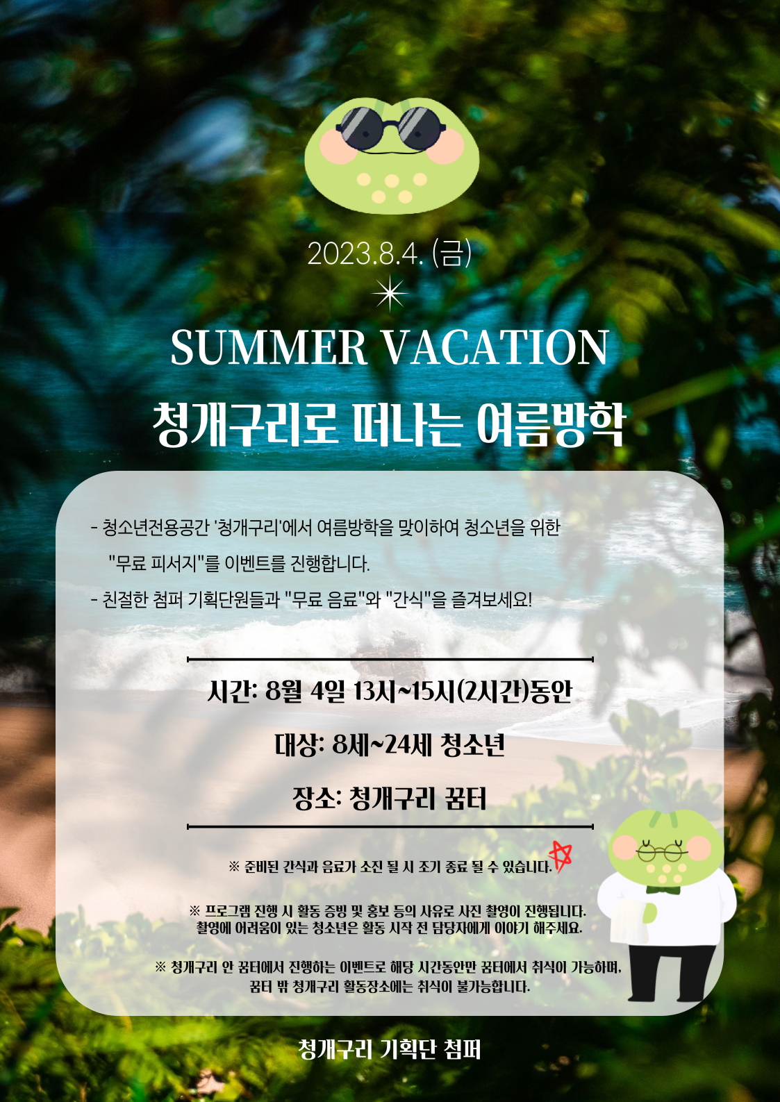 | [¾È³»] û¼Ò³â Àü¿ë°ø°£ û°³±¸¸® : ¿©¸§¹æÇÐ ÇǼÁö À̺¥Æ® (8/4 ´Ü±â À̺¥Æ®) | |||