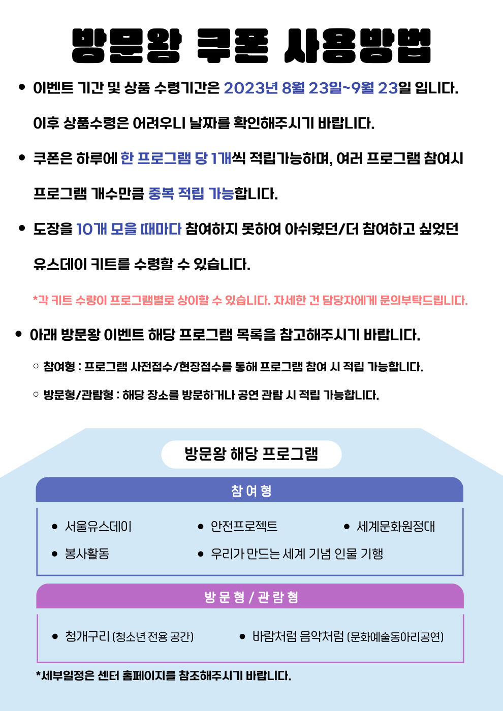 | [¾È³»] ¹æ¹®¿Õ À̺¥Æ® Âü¿© ¾È³» (8/8~9/23) | |||