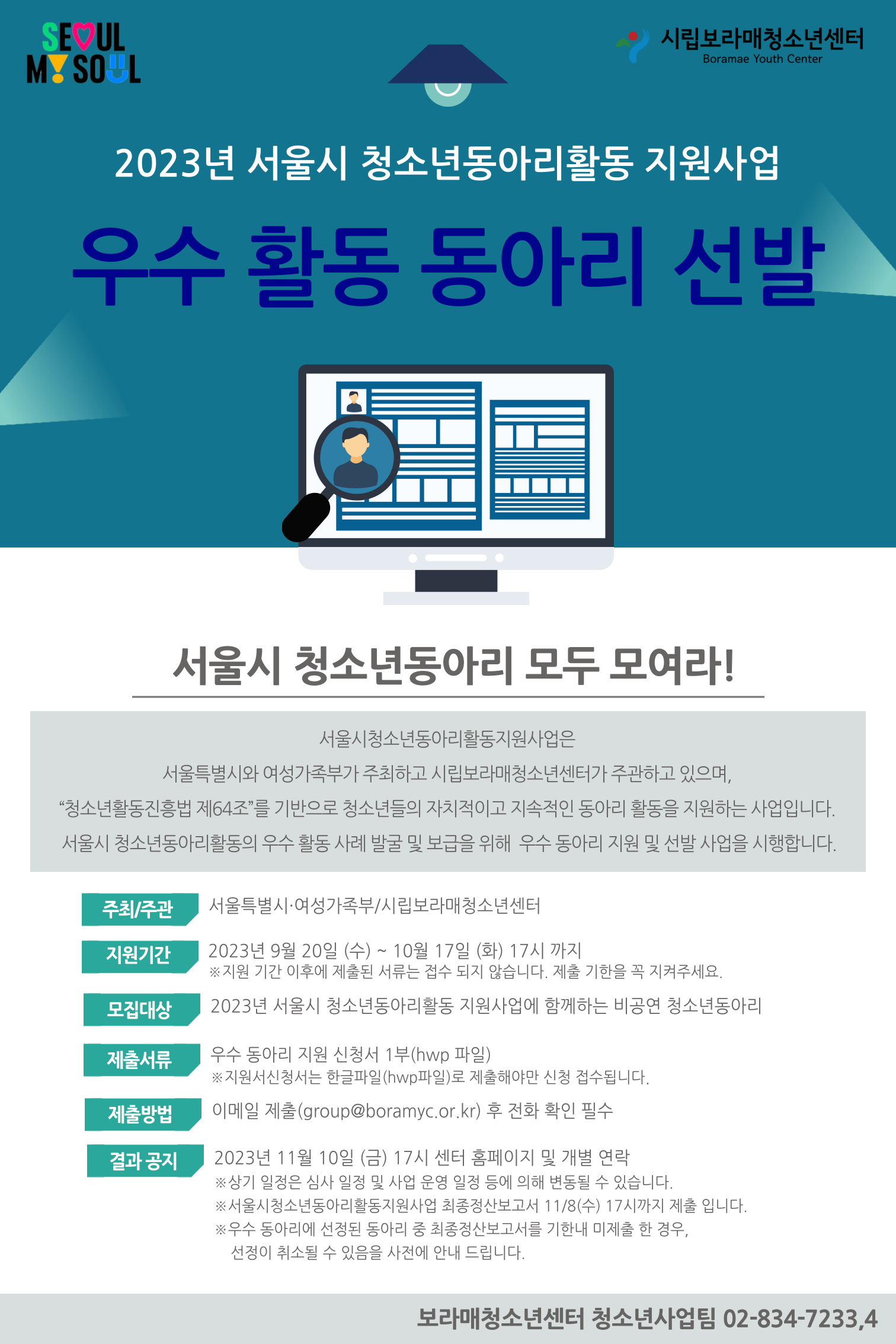 [µ¿¾Æ¸®Áö¿ø»ç¾÷] 2023³â ¼¿ï½Ã û¼Ò³âµ¿¾Æ¸®È°µ¿Áö¿ø»ç¾÷ ¿ì¼ö Ȱµ¿ µ¿¾Æ¸® ¼±Á¤ ¾È³» | |||