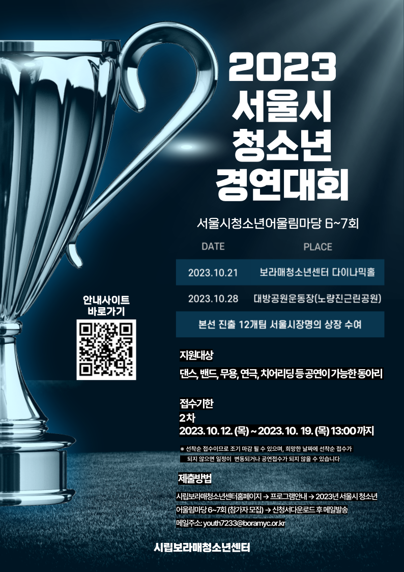 [¾î¿ï¸²¸¶´ç] [¸ðÁý] 2023³â ¼¿ï½Ã û¼Ò³â¾î¿ï¸²¸¶´ç 6~7ȸ û¼Ò³â °æ¿¬´ëȸ Âü°¡ÀÚ Ãß°¡¸ðÁý (~10/19±îÁö) | |||
