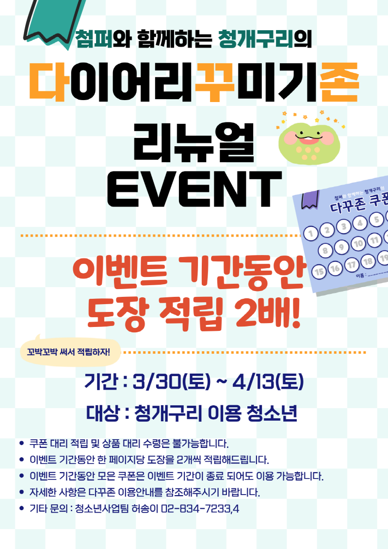 [¾È³»] û°³±¸¸® ´Ù²ÙÁ¸ ¸®´º¾ó ¾È³» ¹× ¸®´º¾ó ±â³ä À̺¥Æ® ½Ç½Ã | |||