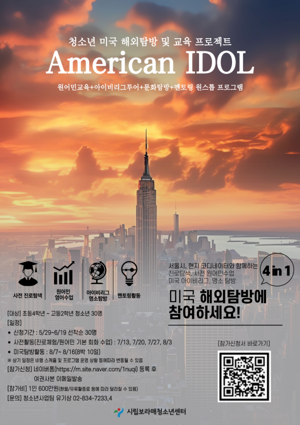 | [¸ðÁý] (ÀÏÁ¤º¯°æ) ¹Ì±¹ ޹æ ÇÁ·ÎÁ§Æ® [¾Æ¸Þ¸®Ä IDOL] Âü°¡ û¼Ò³â ¸ðÁý | |||||