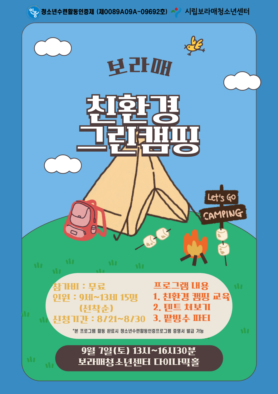 | ÀÛ¼ºÀÚ : û¼Ò³â»ç¾÷ÆÀ(program@boramyc.or.kr) ÀÛ¼ºÀÏ : 2024-08-21 Á¶È¸¼ö : 354 | |||