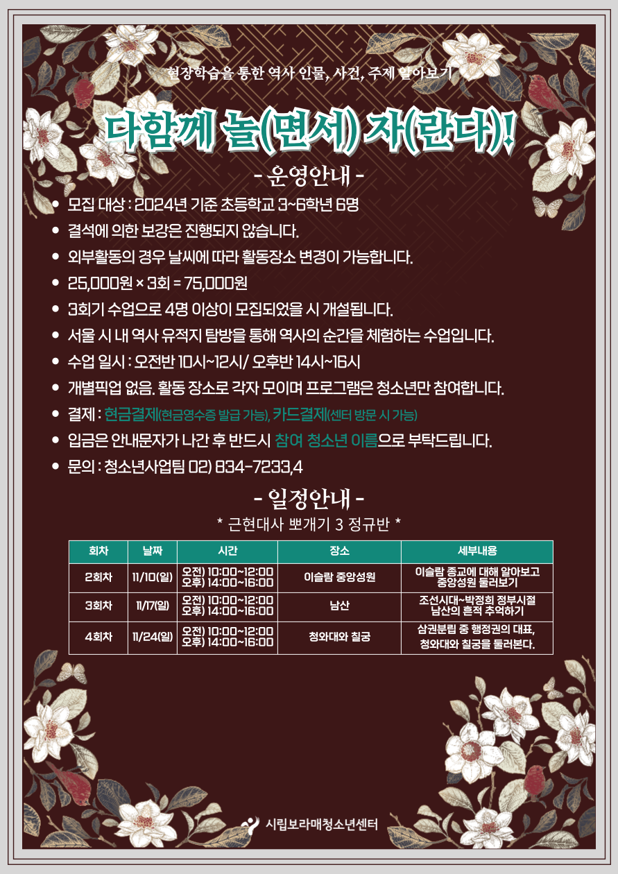 [¾È³»] ´ÙÇÔ²² ³î(¸é¼) ÀÚ(¶õ´Ù)! ¿ª»ç޹æ 11¿ù ÀÏÁ¤ ¾È³» | |||