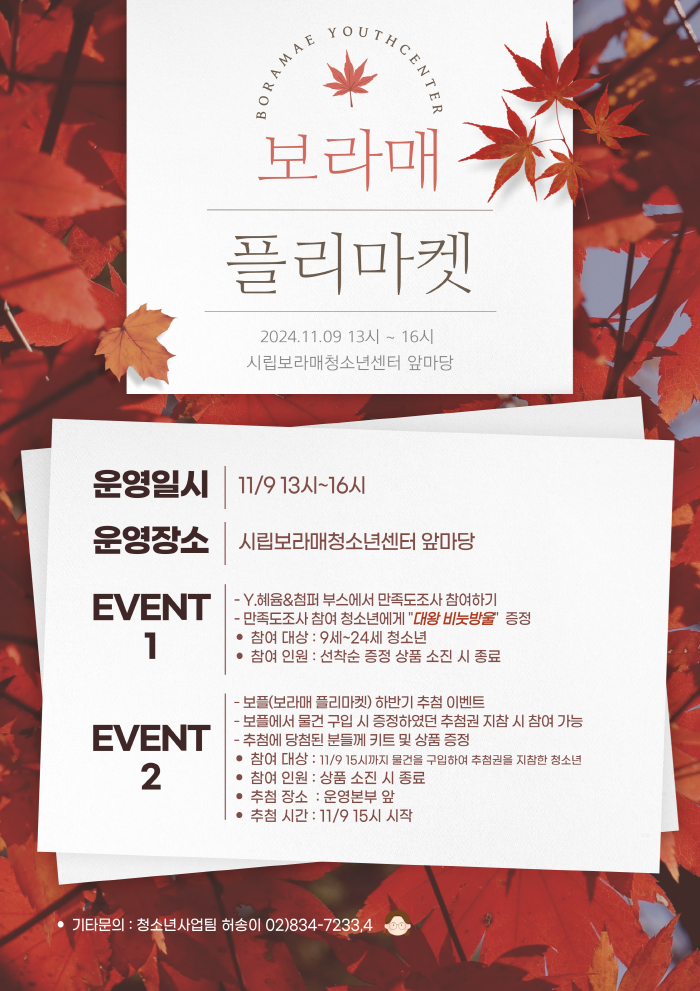 [¾È³»] 11¿ù 9ÀÏ º¸ÇÃ(º¸¶ó¸Å Çø®¸¶ÄÏ)¿î¿µ ¾È³» | |||