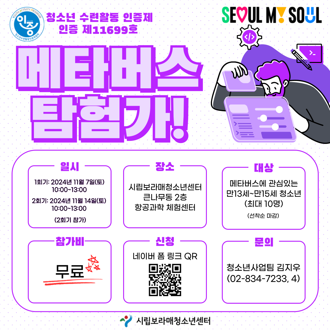 [¸ðÁý] [ÀÎÁõ Á¦11699È£] 2024 ¸ÞŸ¹ö½º ŽÇè°¡! Âü¿© û¼Ò³â ¸ðÁý! | |||