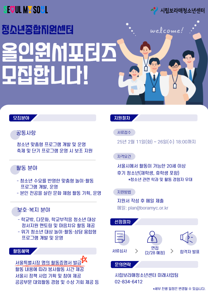 [¸ðÁý] û¼Ò³âÁ¾ÇÕÁö¿ø¼¾ÅÍ ¿ÃÀοø¼Æ÷ÅÍÁî 2Â÷ ¸ðÁý | |||