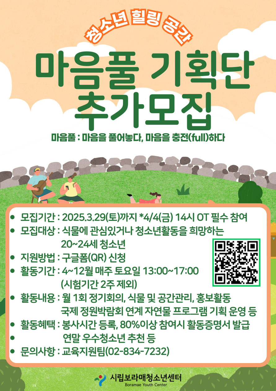[¸ðÁý] û¼Ò³âÀü¿ë°ø°£ '¸¶À½Ç® ±âȹ´Ü' Ãß°¡ ¸ðÁý | |||