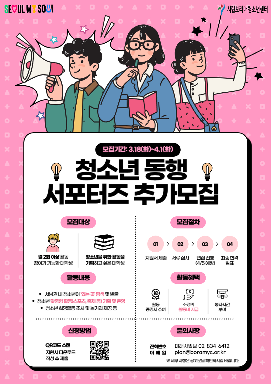 [¸ðÁý] 2025³â ÇöÀå¸ÂÃãÇüȰµ¿ 'û¼Ò³âµ¿Çà¼Æ÷ÅÍÁî' 2±â Ãß°¡ ¸ðÁý | |||