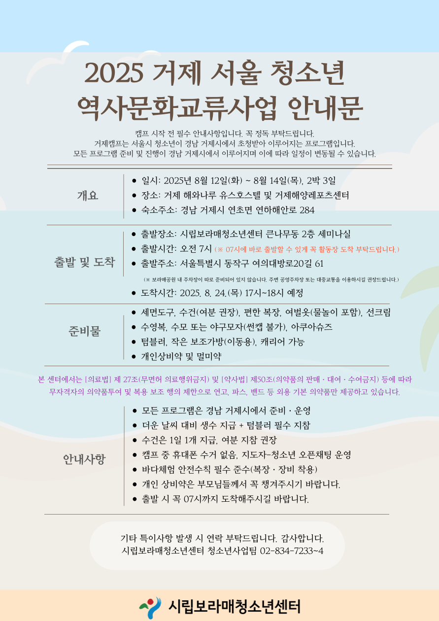 [¾È³»] 2025 ¼¿ï-°ÅÁ¦ û¼Ò³â¿ª»ç¹®È±³·ùȰµ¿ °ÅÁ¦Ä·ÇÁ ¾È³» | |||