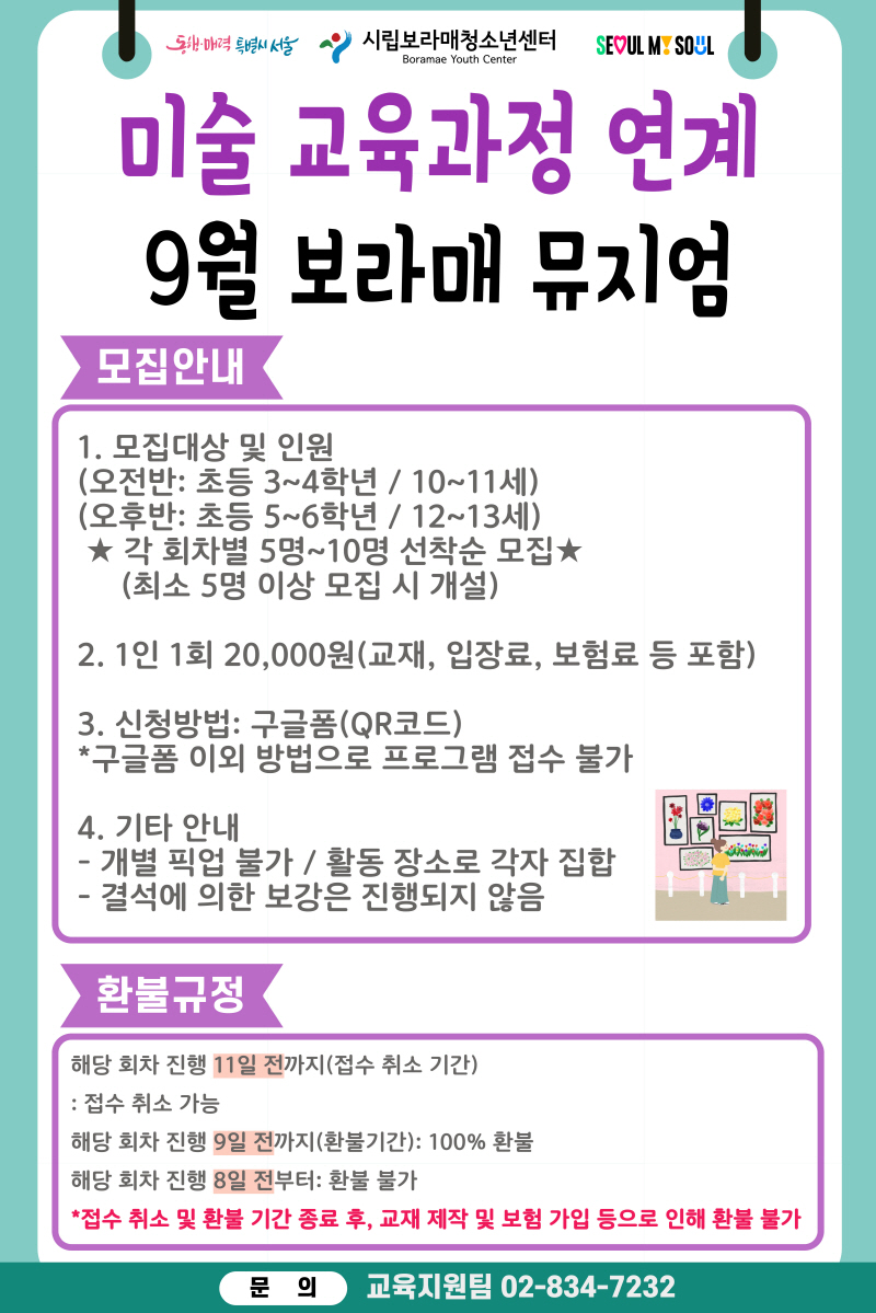[¸ðÁý] ¹Ì¼ú ±³À°°úÁ¤ ¿¬°è ÇÁ·Î±×·¥ - º¸¶ó¸Å¹ÂÁö¾ö 9¿ù Ŭ·¡½º (¡Ú±¸±ÛÆû ½Åû¼ Á¦Ãâ Çʼö!!) | |||