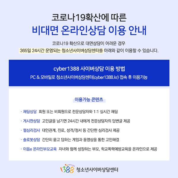 | Äڷγª19È®»ê¿¡ µû¸¥ ºñ´ë¸é ¿Â¶óÀÎ »ó´ã ÀÌ¿ë ¾È³» | |||